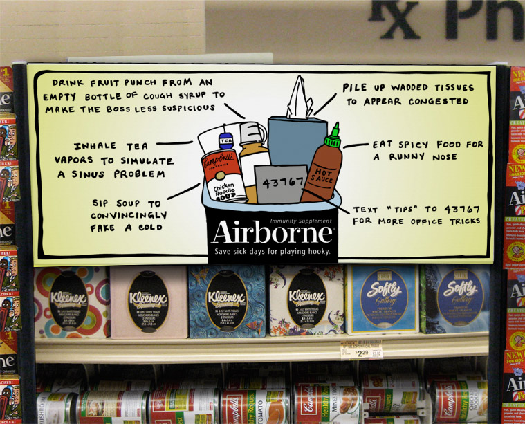 This in-store display will help Airborne consumers convince their coworkers that they really were sick during their time away from the office.