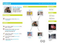 This project also spun off a project concept called Familybook, a family oriented social networking site. It's main features are the ability to keep families in touch with each other and inform each other of events.