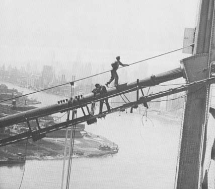 These workmen put their lives on the the line by painting the Triborough bridge. New York, 1936.