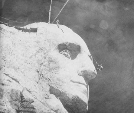 These workmen put their lives on the line to carve out famous faces. South Dakota, 1938.