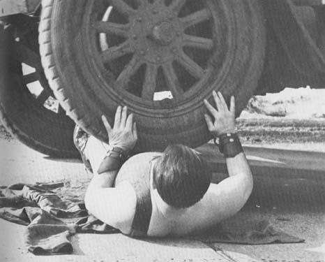 This man puts his life on the line to show his strength. New York, 1921.