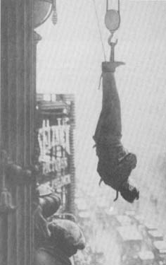 Harry Houdini puts his life on the line to perform a trick. 1925.